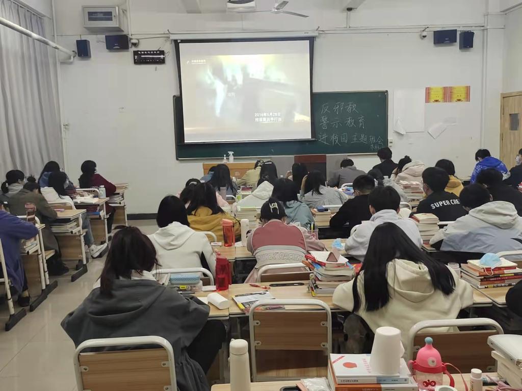 二是开展国家安全教育主题班会,观看反邪教警示教育宣传片,推进“反邪教警示教育进校园”活动。