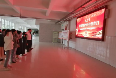 三是在教学楼电子显示屏上滚动播放国家安全教育宣传片,传播国家安全知识,增强国家安全教育浓厚氛围。