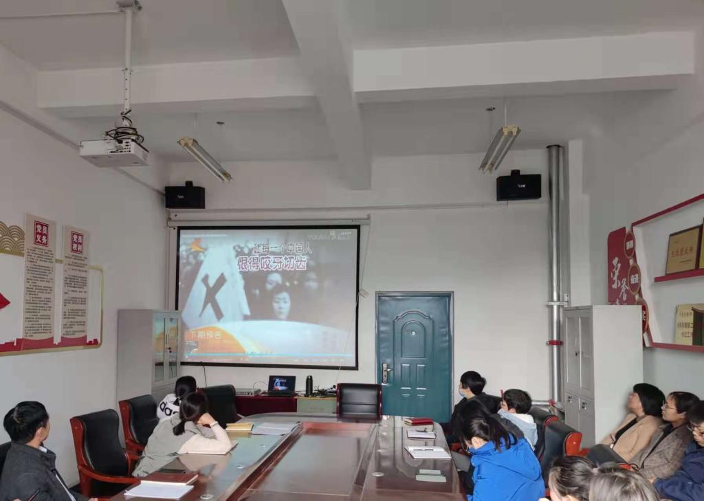 随后,大家共同观看了纪念南京大屠杀纪录片,该片再现了日本侵略者在南京烧杀掳掠、暴残奸淫的滔天罪行。染血之地,俱我国土;遍野横尸,皆我同胞。大家深受震撼,悲愤不已。
