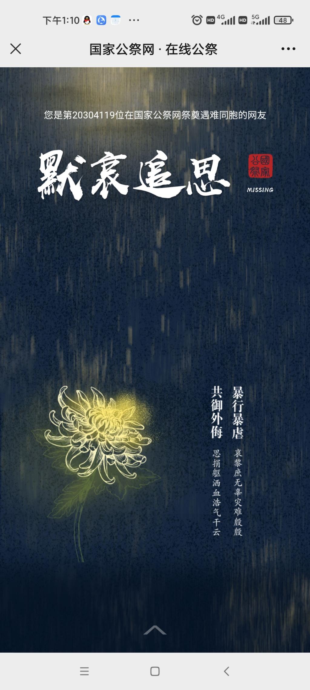 而后,全体同志登录国家公祭网,祭奠、追思、警世、祈愿。