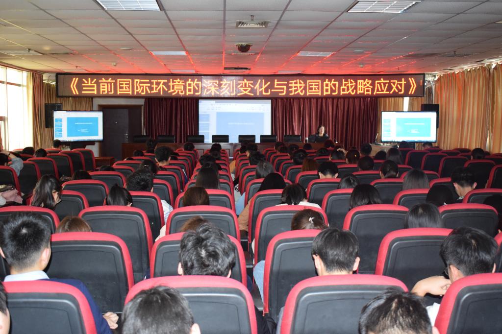 讲座上,郭德香教授从近年来发生的英国脱欧、美国总统竞选等重大国际事件深入浅出地讲解了当前国际形势的不确定性及其不确定性的来源。随后,郭德香教授在讲座上简要分析了大国外交的总体局势以及中美、中俄、中欧等国际关系状况和中国外交的应对战略。郭德香教授指出,坚持发展才是硬道理。面对纷乱复杂、风云突变的国际形势,以习近平同志为核心的党中央高瞻远瞩,洞察大势,运筹帷幄,带领中国人民披荆斩棘,攻坚克难,砥砺前行,开创了中国特色大国外交的新局面。尤其是党的十八大以来,中国国力增长迅猛,参与地区和国际事务的能力进一步增强,走向世界舞台中央的步伐进一步加大,发展势头愈发强劲。