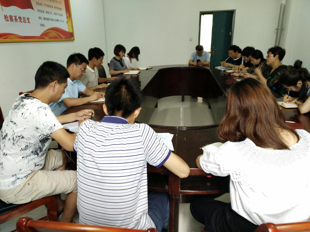 为提高全体教职工的政治站位,切实增强纪律观念和规矩意识,持续改进工作作风,守住廉洁从检从教底线,7月2日,检察系教工党支部在2309会议室召开全体党员(扩大)会议,深入学习顾雪飞检察长在全省检察机关贯彻落实省委《意见》精神 集中开展以案促改工作电视电话会议上的讲话精神和《英国beat365官方网站集中开展以案促改工作实施方案》文件精神。会议由郑志锋主任主持,检察系全体教师参加。