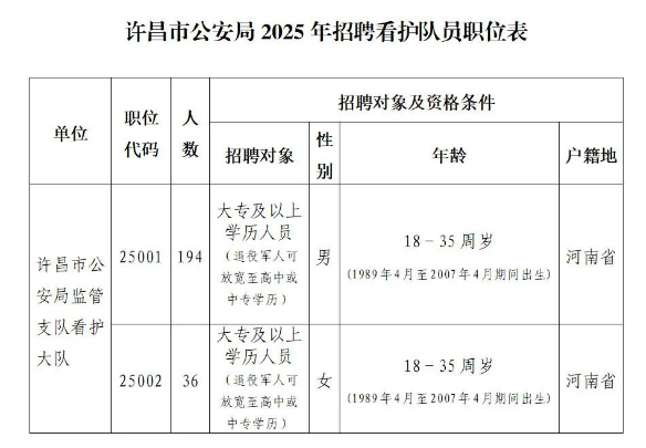 230人!许昌市公安局2025年公开招聘看护队员公告